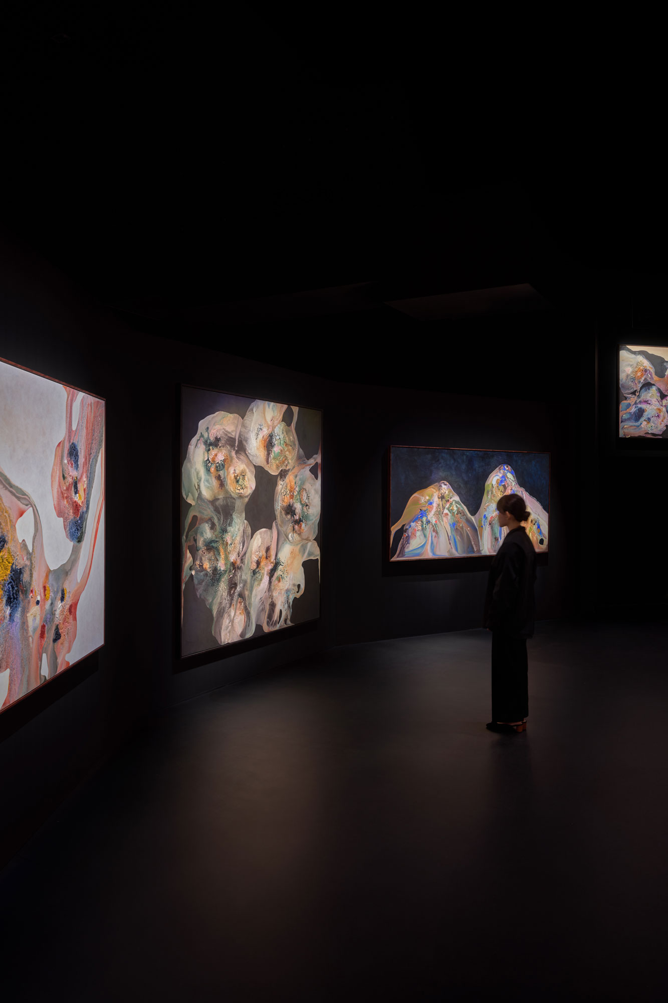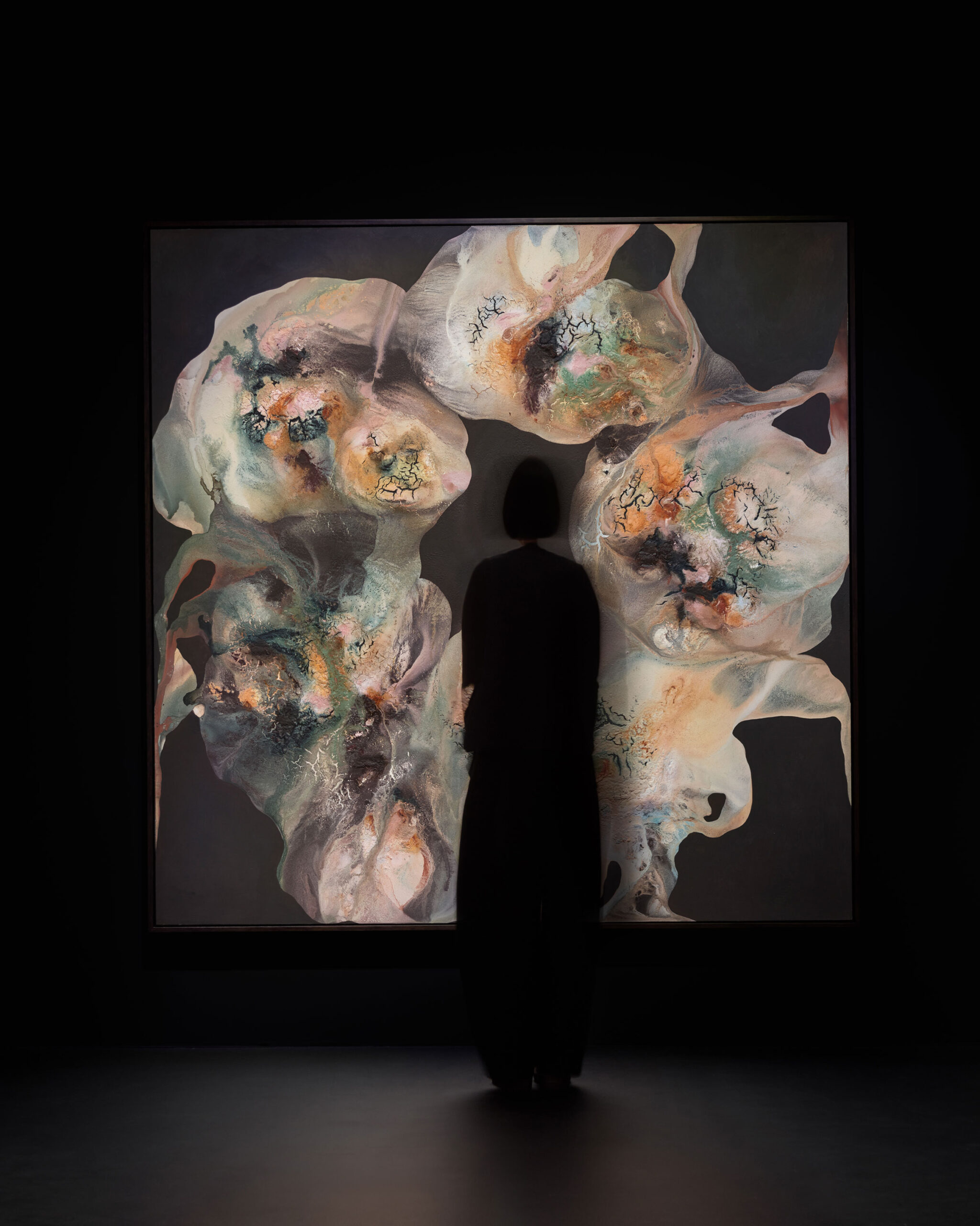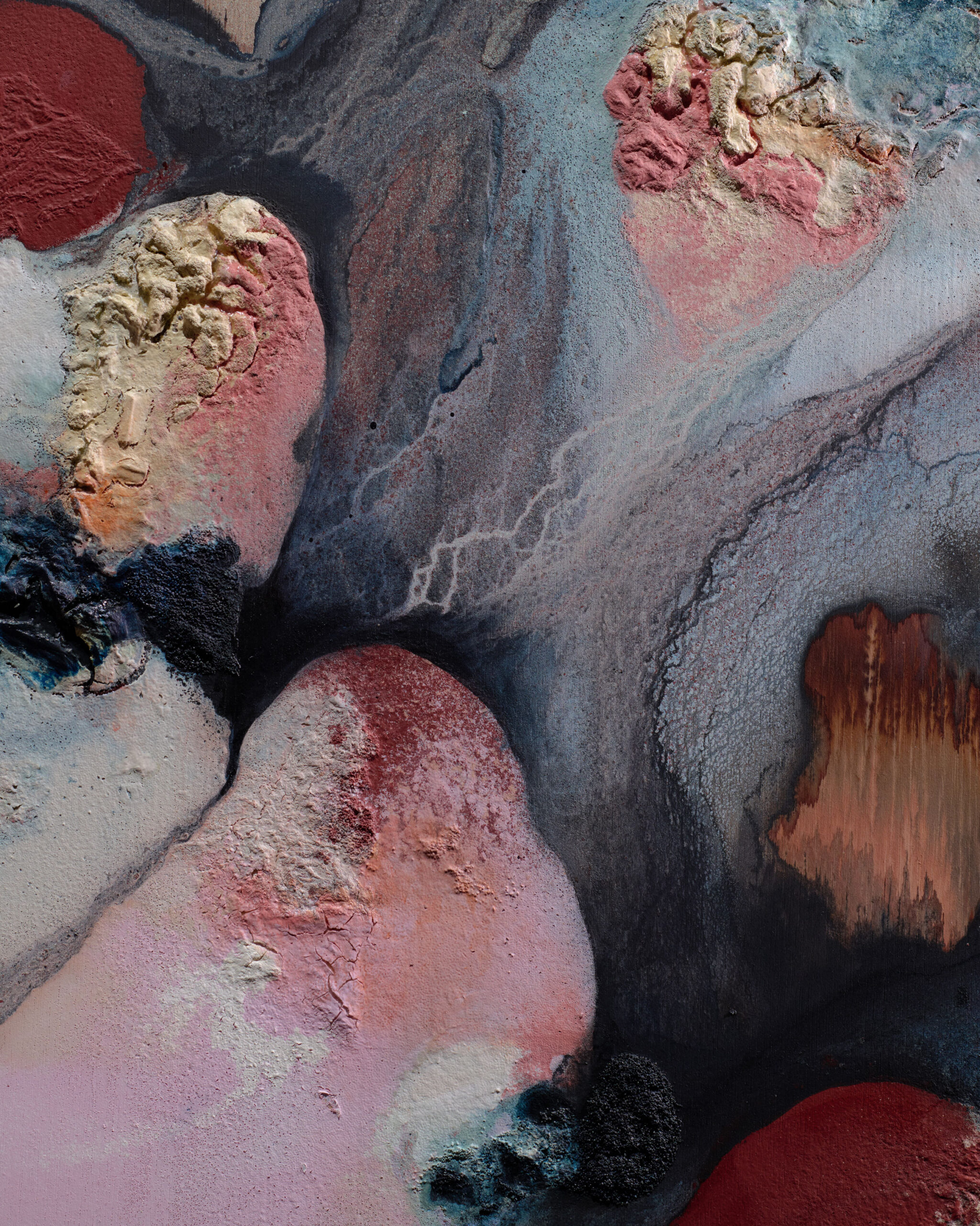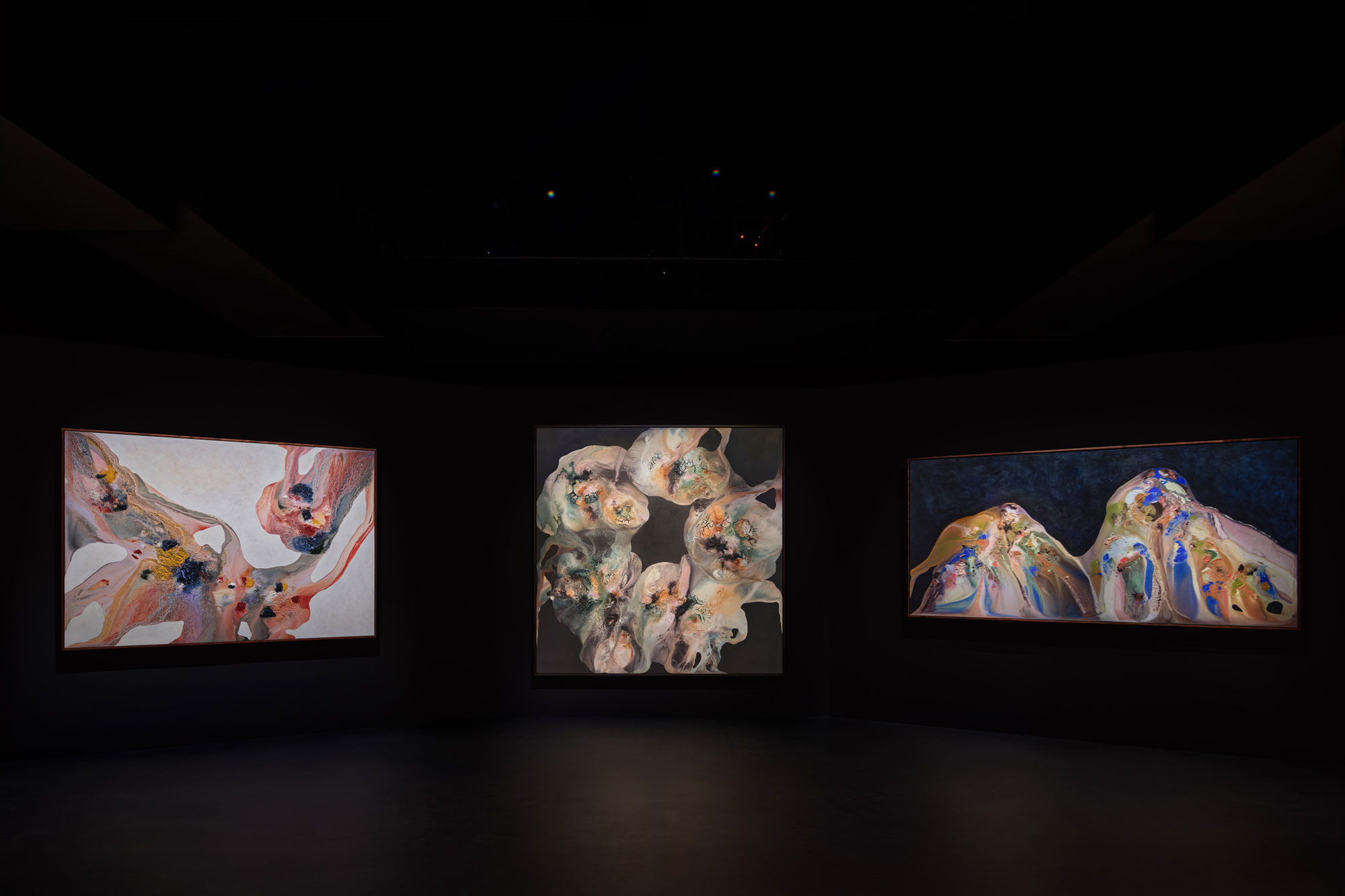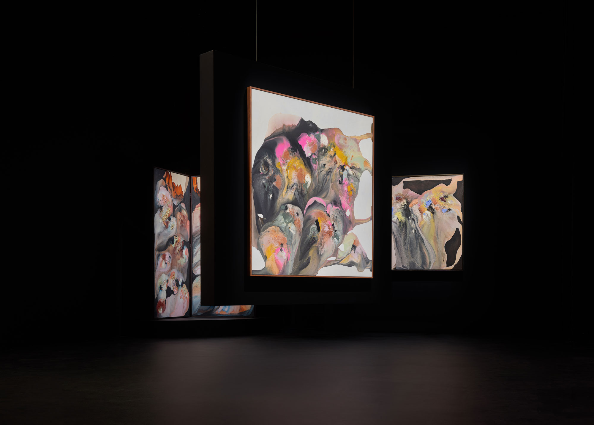 “I see these paintings as visual diaries, articulations of the impossible. How to describe the infinite things that we have seen, felt, received, collected, archived in the course of a month. When I look at these paintings, I see this incredible ability to distill, reflect, consume, compound, and then in a way it be its own thing…When I look at these paintings, I see stars, I see universes, I see black holes converging. I see the imagery that’s collected by astronomers and physicists as they seek to explain the origins of the universe.”